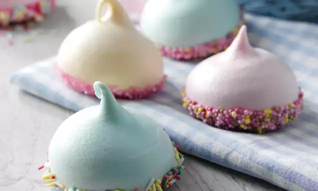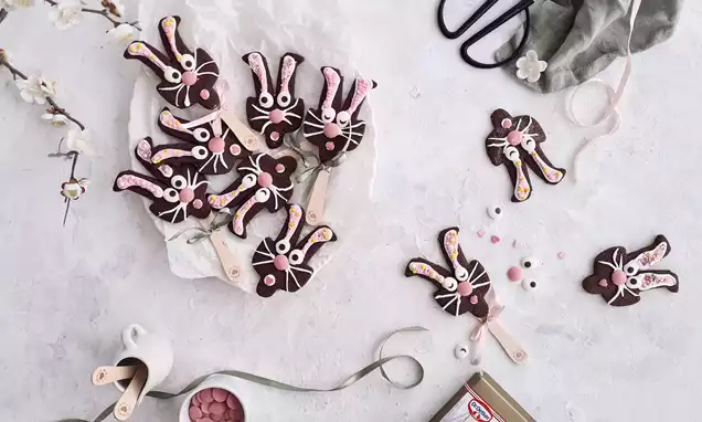 Doppa bollarna i chokladen och låt rinna av ordentligt. Strö genast över gult kristallströssel från Dr. Oetker Summer Mix. Låt sedan chokladen stelna något i kylskåp innan kycklingarnas vingar, näbbar, fötter och ögon (blommar från Summer strösslet) trycks fast.