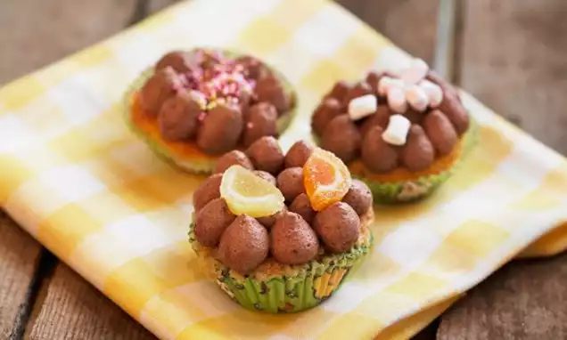 Håll upp frostingen i spritspåsar och spritsa på kakan och dekorera med Dr. Oetker Easter Party Sprinkles och Easter Sugar Decoration.