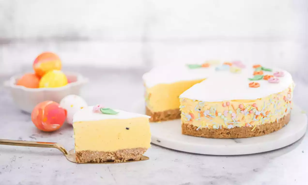Kavla ut sockermassan tunt. Använd springformen som mall och skär ut en rund form som är lika stor som tårtan. Lägg locket av sockermassa ovanpå din cheesecake.