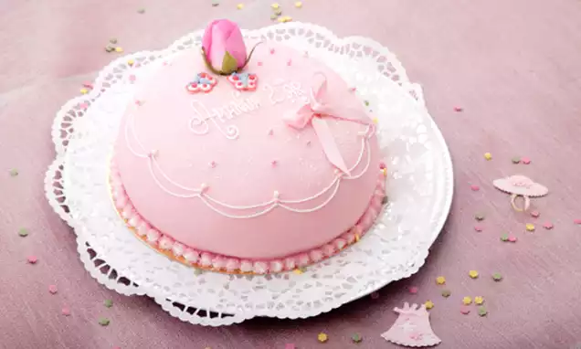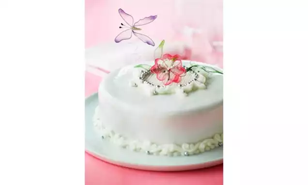 När glazen är 32–35° C är det dags att hälla den över bakelserna. Tag ut glassbakelserna ur frysen och placera dem på ett galler. Häll sedan glazen över bakelserna och dekorera med frystorkade hallon. Låt stelna 10–15 minuter innan du flyttar bakelserna till ett serveringsfat. Servera direkt!